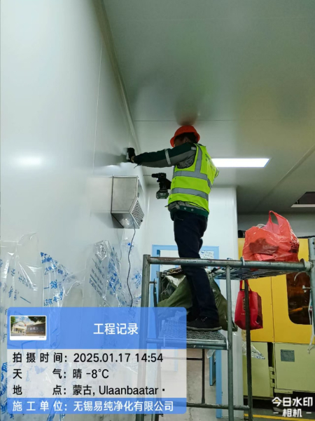 蒙古國可樂公司瓶蓋、瓶胚10萬級無塵車間安裝過程中,業(yè)主在眾多供應(yīng)商中選擇易純凈化做為潔凈車間的安裝施工方,是對易純公司的經(jīng)驗和能力的認(rèn)可,也為易純走向國際化提供了一個拓展和展現(xiàn)的平臺。